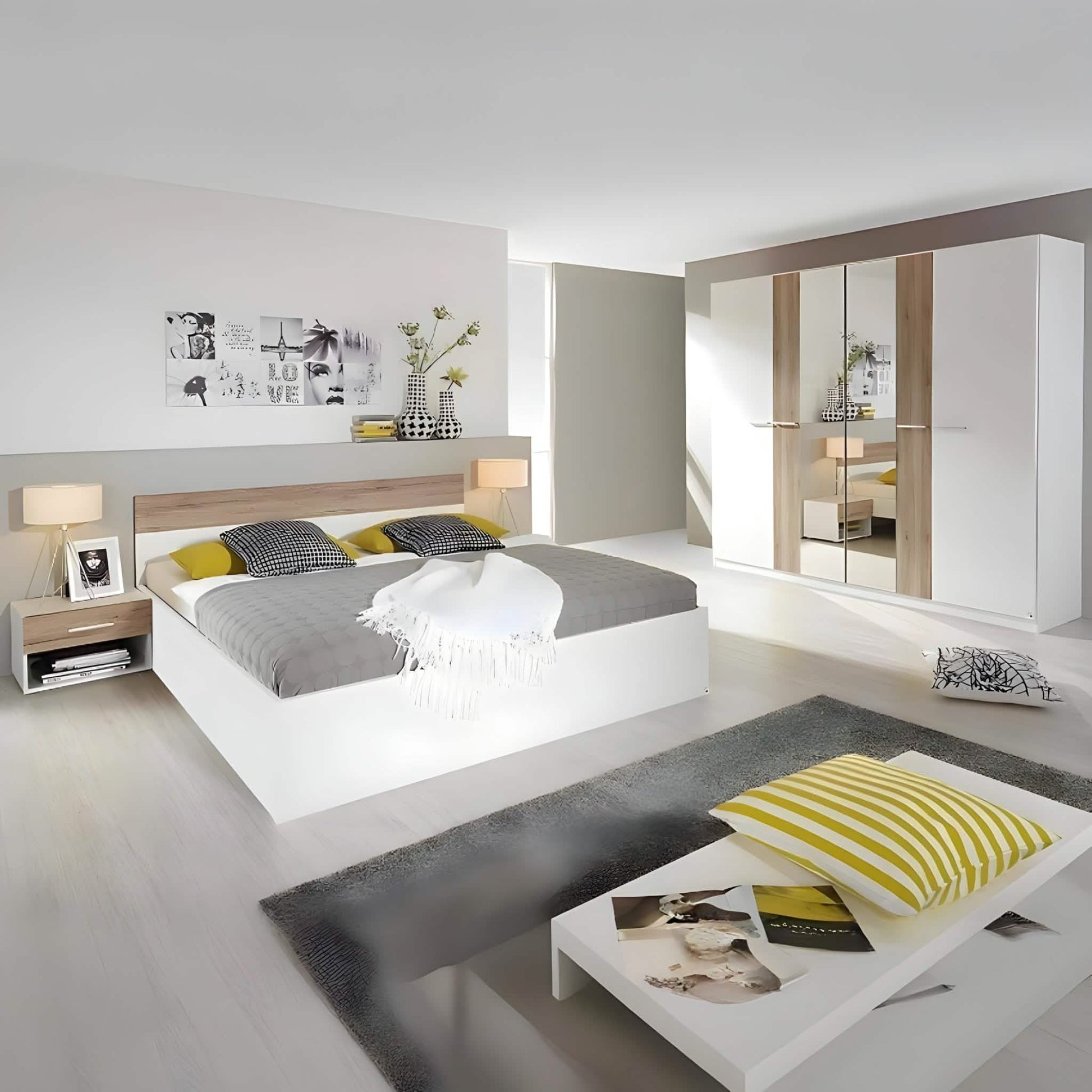 غرفة نوم كاملة، خشب ام دي اف - 4 قطع