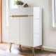 تتكون الجزامة من درج علوي وضلفتين قلاب بتصميم بسيط وأنيق، وترتكز على أرجل ديكورية من خشب الزان الطبيعي لتمنحها ثباتًا وأناقة إضافية