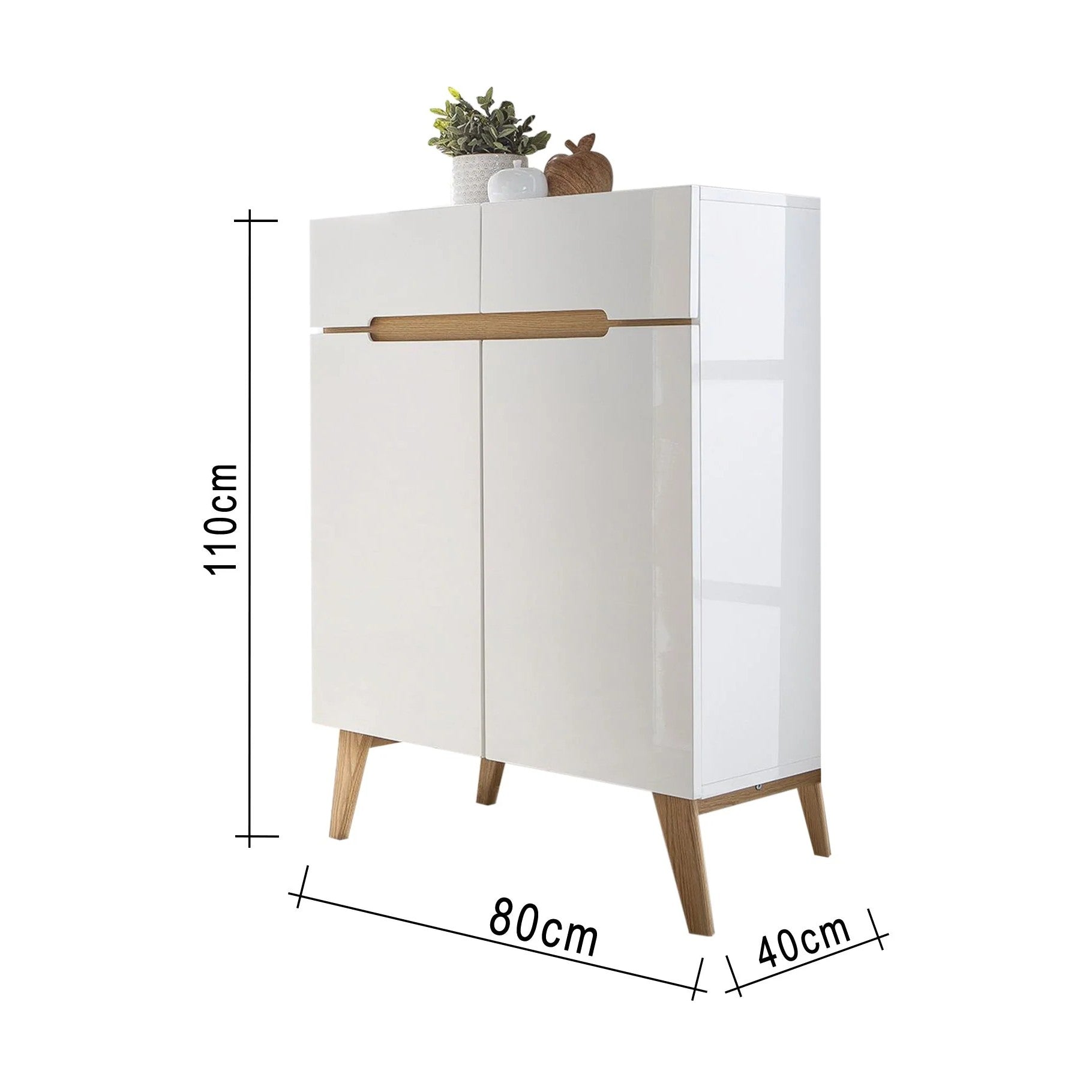 قطعة أثاث تجمع بين اللون الأبيض والخشبي الفاتح، بتصميم عصري يوفر مساحة مثالية لتنظيم أحذية جميع أفراد المنزل