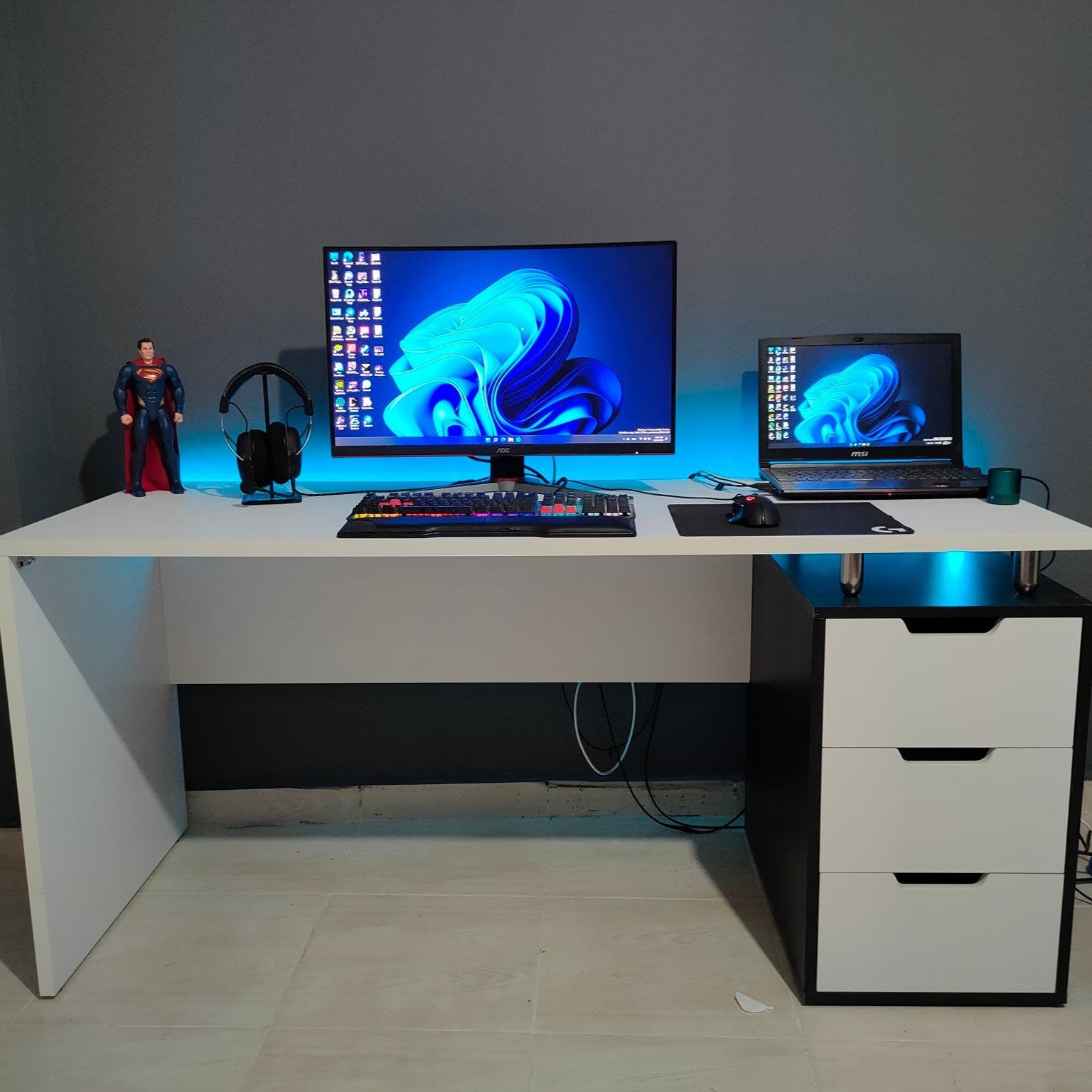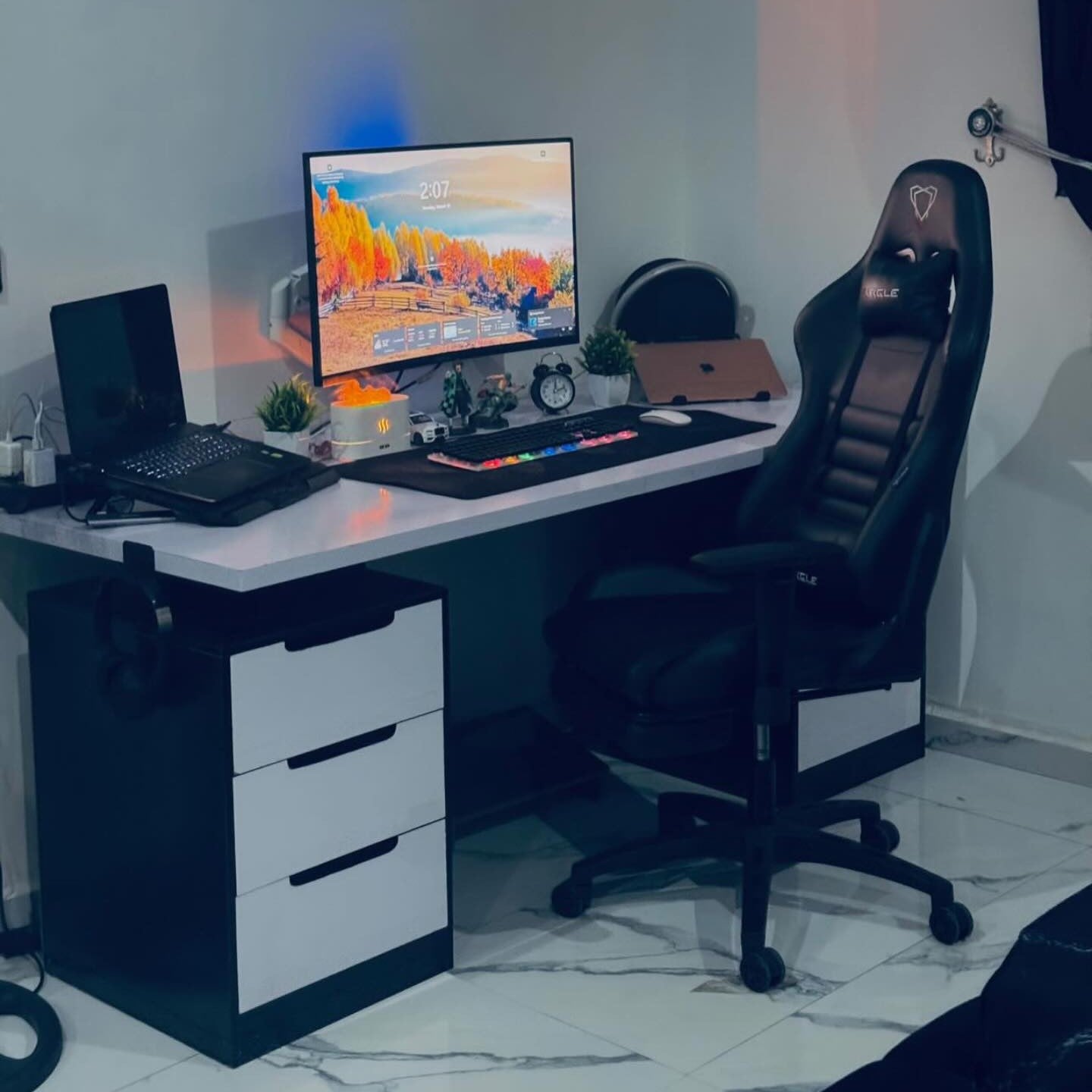 مكتب جيمينج أبيض – خامة ام دي اف اسباني